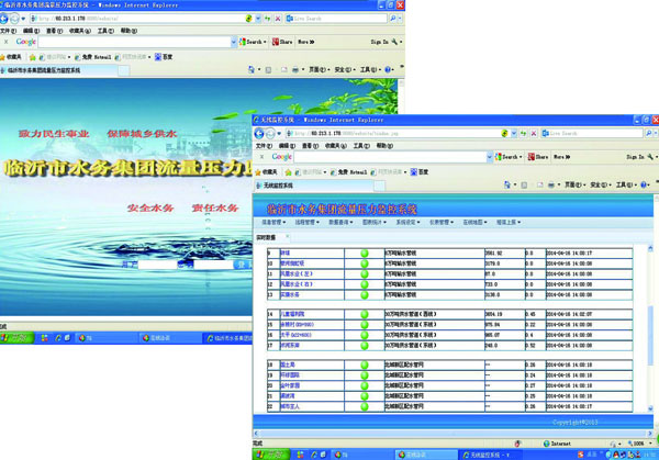 三、系統(tǒng)功能 v 實(shí)時(shí)采集管道壓力、流量數(shù)據(jù)數(shù)據(jù)接收中心服務(wù)器; v 能顯示整個(gè)管網(wǎng)系統(tǒng)的供水管線圖及地理分布圖(及用戶用水信息); v 集中顯示各監(jiān)測(cè)點(diǎn)重要參數(shù)(如瞬時(shí)流量、累計(jì)流量、壓力、電池電壓、報(bào)警狀態(tài)、通訊狀態(tài); v 各用水單位的界面和報(bào)表功能,可隨時(shí)增加或刪除,操作方便快捷; v 按區(qū)域、地塊劃分用戶,注明長(zhǎng)期用戶和季節(jié)性用戶,能單獨(dú)顯示各用戶子站的全部測(cè)量參數(shù)及設(shè)置參數(shù); v 能自動(dòng)生成各用戶的瞬時(shí)流量、累計(jì)流量、壓力的并行歷史曲線,并可查詢?nèi)我庥脩?、任意參?shù)、任意時(shí)段的歷史數(shù) 據(jù),歷史數(shù)據(jù)和曲線可以轉(zhuǎn)存和打??; v 能生成各用戶的用水量日?qǐng)?bào)表,月報(bào)表及年報(bào)表,生成分時(shí)等特殊報(bào)表的功能。任意組合用戶測(cè)量趨勢(shì)、測(cè)量參數(shù)累 計(jì)、故障時(shí)段等趨勢(shì)記錄打印輸出。 現(xiàn)場(chǎng)圖片  |