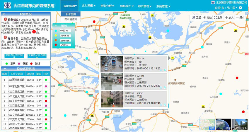 積水信息化監(jiān)測系統(tǒng)是對雨量站、水位站監(jiān)測設(shè)備進行統(tǒng)一管理的綜合管理系統(tǒng),內(nèi)容包括站點設(shè)備管理、站點設(shè)備控制、站點數(shù)據(jù)采集、站點設(shè)備維護、數(shù)據(jù)分析和展示、站點報警提示等。通過GRPS等方式進行傳輸至平臺。