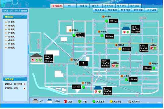 城市供水管網(wǎng)監(jiān)測系統(tǒng)適用于供水企業(yè)遠(yuǎn)程監(jiān)測供水管網(wǎng),工作人員可以在供水公司調(diào)度中心遠(yuǎn)程監(jiān)測全市供水管網(wǎng)的壓力及流量情況。科學(xué)指揮各水廠啟停供水設(shè)備,保障供水壓力平衡、流量穩(wěn)定;及時發(fā)現(xiàn)和預(yù)測爆管事故的發(fā)生。